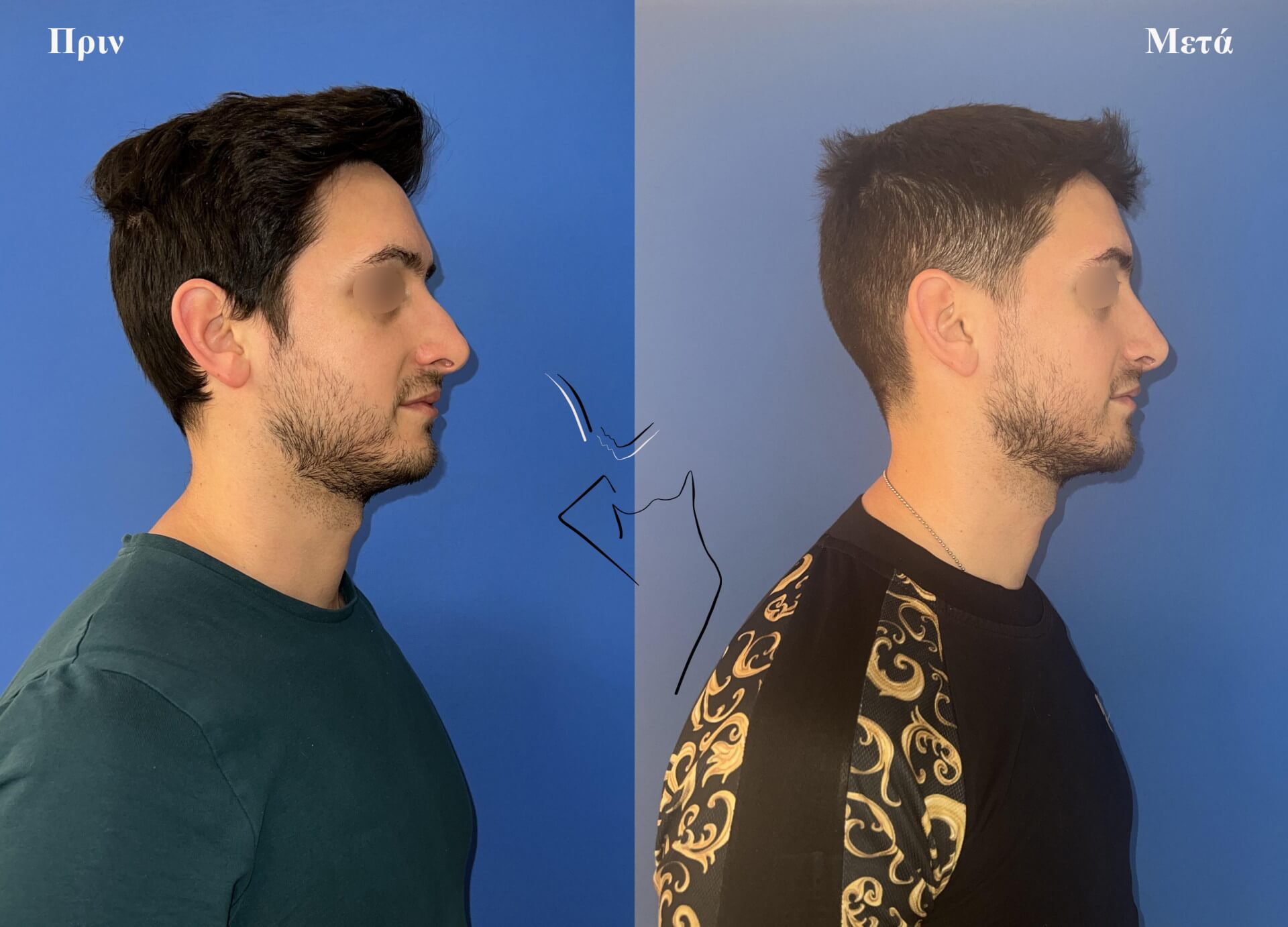 Φυσική μείωση ύβου (καμπούρας) μύτης σε άντρα 35 ετών.