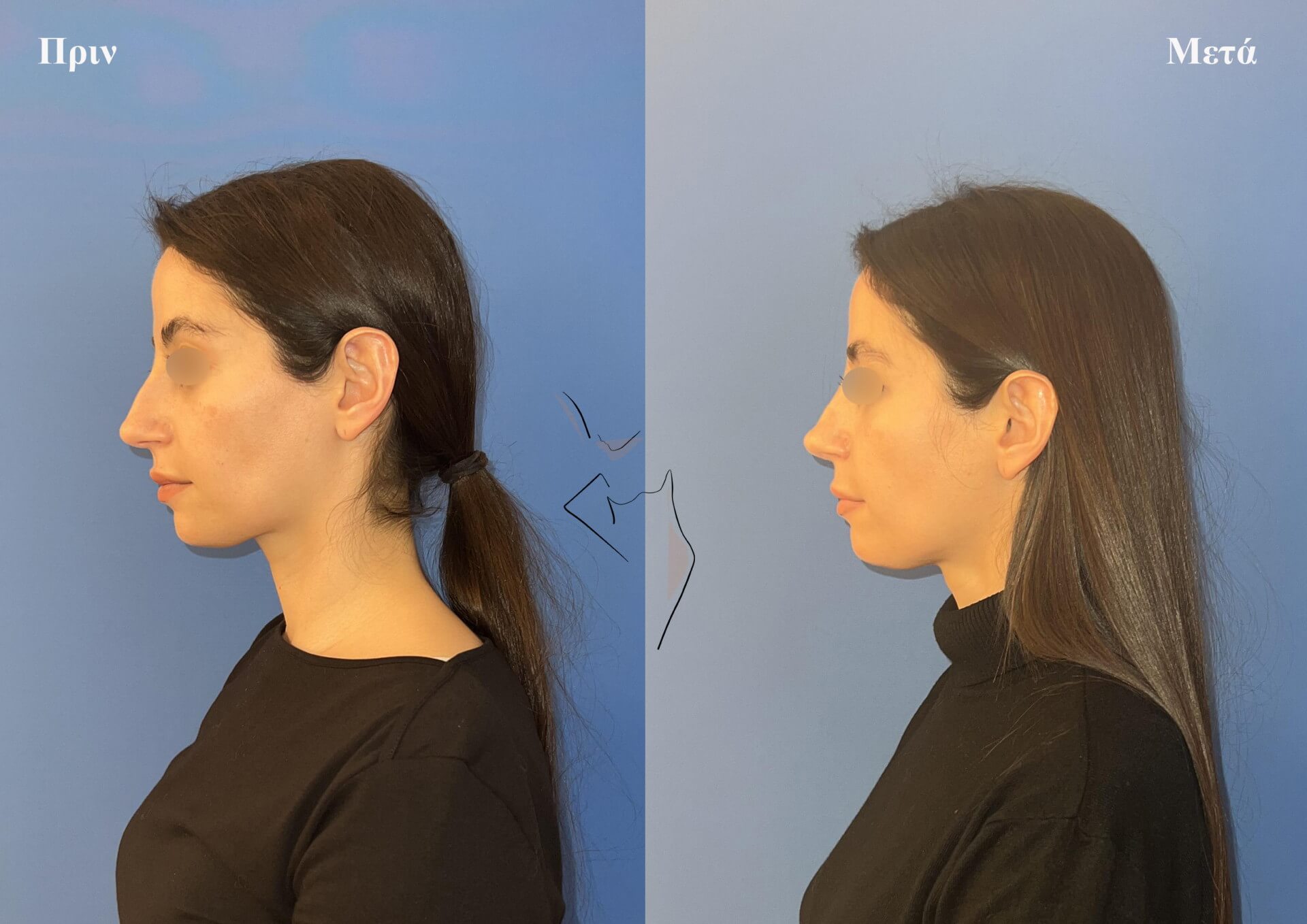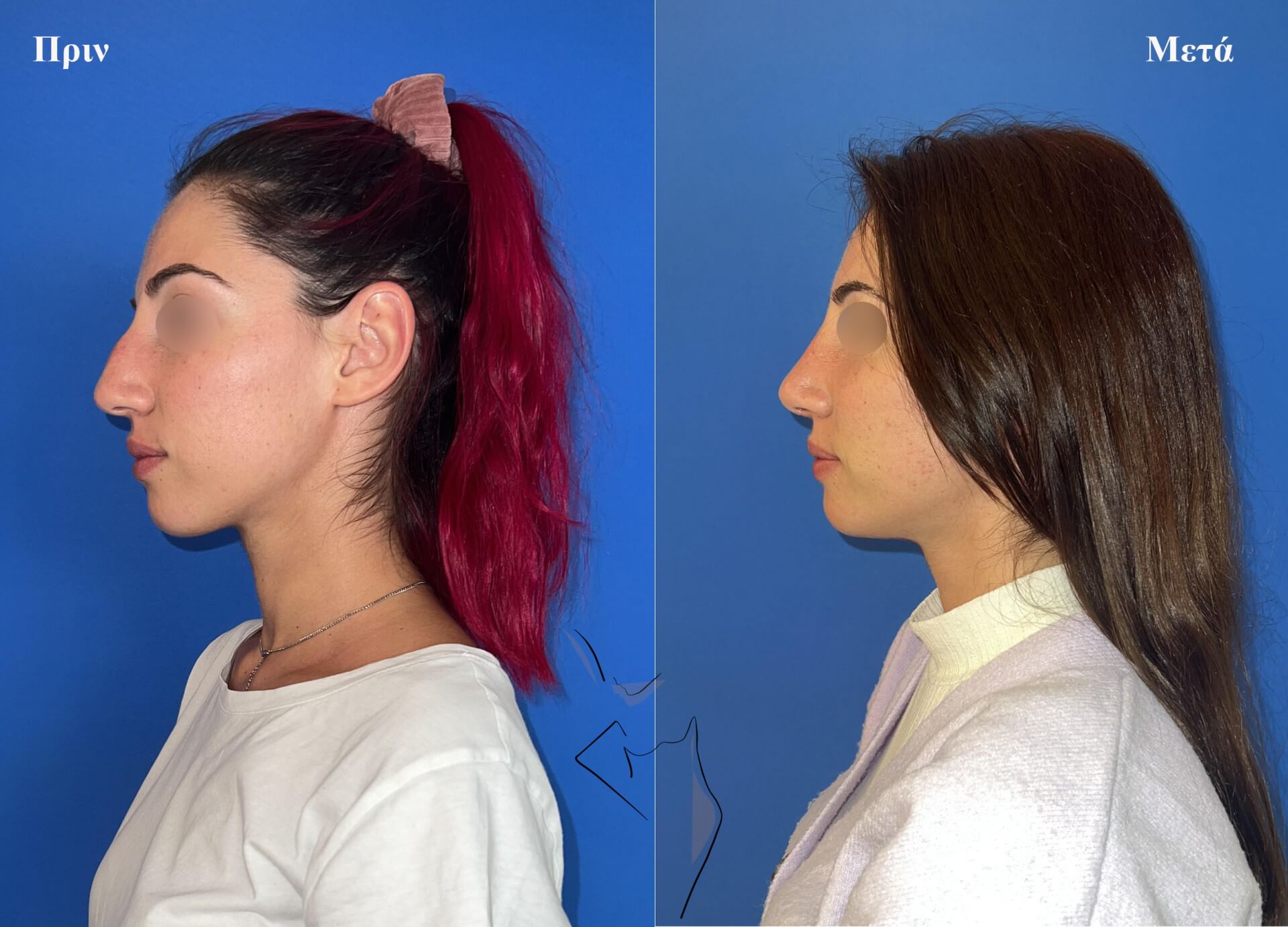 Διακριτική μείωση ύβου (καμπούρας) σε γυναίκα 30 ετών.